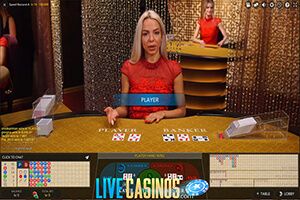 When playing live dealer baccarat, players will have three bet choices. They can place their money on the Banker hand, the Player hand, or a tie bet. The object when playing the game is to bet on the hand that will have a total of 9 or as close to that as possible after drawing 2 or 3 cards. Live baccarat is played with 6 or 8 decks and all payouts are offered at 1:1 with the exception of the tie bet.